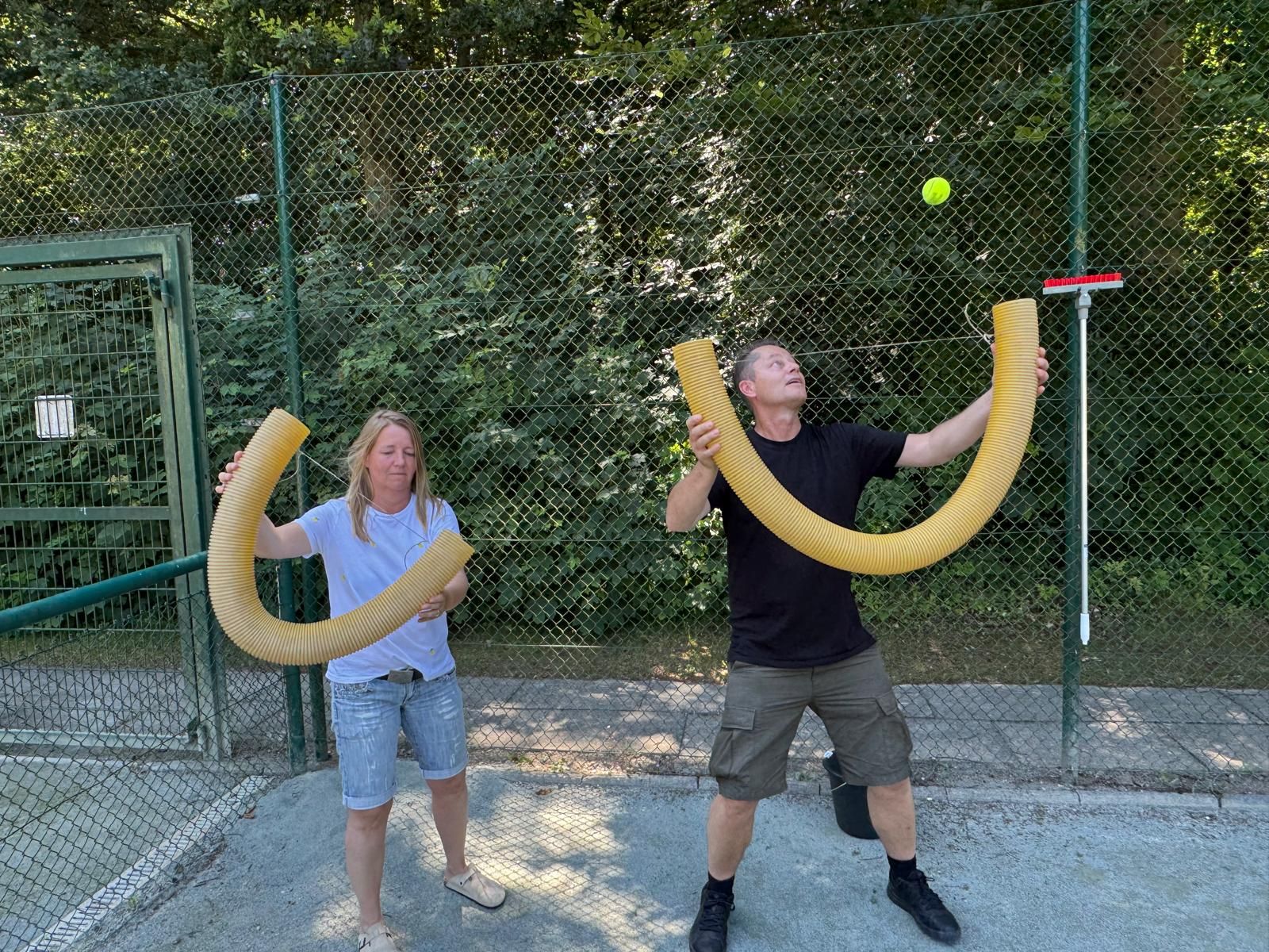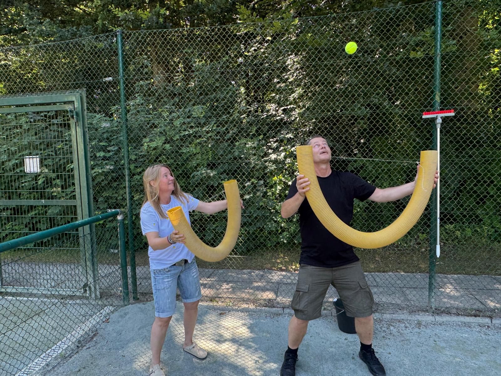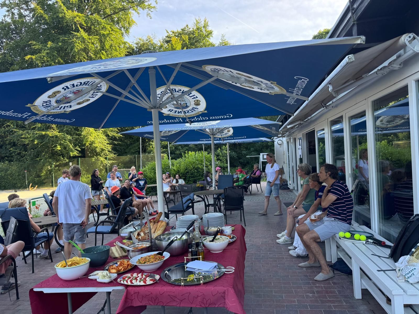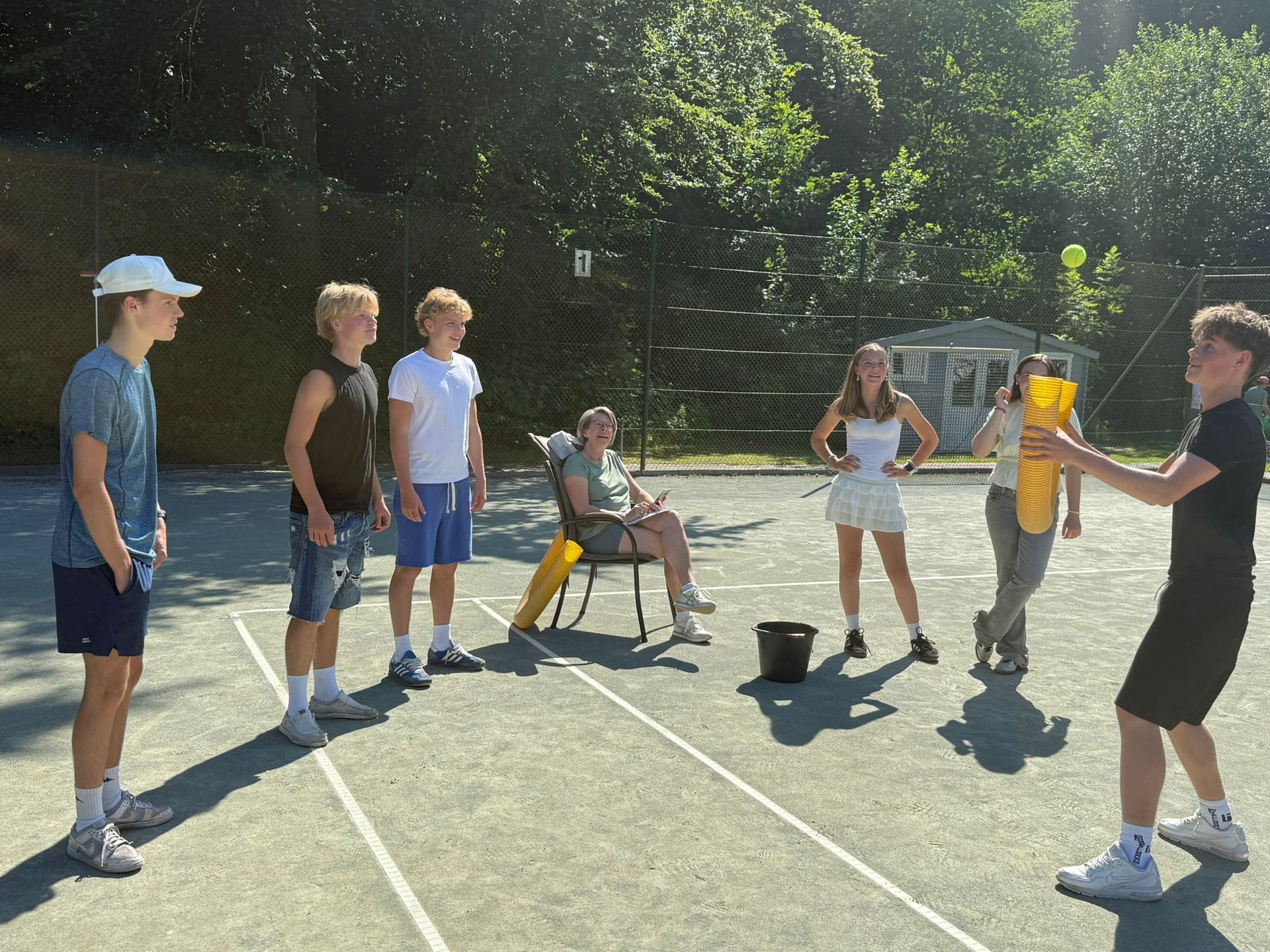 Am Samstag den 19.07. stand im Tennisclub Glücksburg die 1. Tennisplatz Olympiade auf dem Plan. Bei wunderbarem Sommerwetter kämpften rund 30 Teilnehmer, aufgeteilt auf fünf Teams, in zehn verschiedenen Minispielen auf unserer Anlage gegeneinander. Hier wurde vor allem nach Geschicklichkeit unter Zeitdruck gefragt: Von Parkourlauf bis Bälle mit einem Pömpel (natürlich unbenutzt) fangen, war alles dabei. Unsere Olympia-Organisation hatte bei der Erstellung der Spiele auf Spaß für Groß und Klein geachtet, sodass für alle ein fairer Wettkampf gegeben war. Trotz des Wettkampfcharakters stand für alle der Spaß an erster Stelle. Am Ende siegte das Team Golies mit deutlichem Abstand vor Team Techno. Im Anschluss gab es noch ein leckeres Grillbuffet mit gemütlichem Beisammensein.