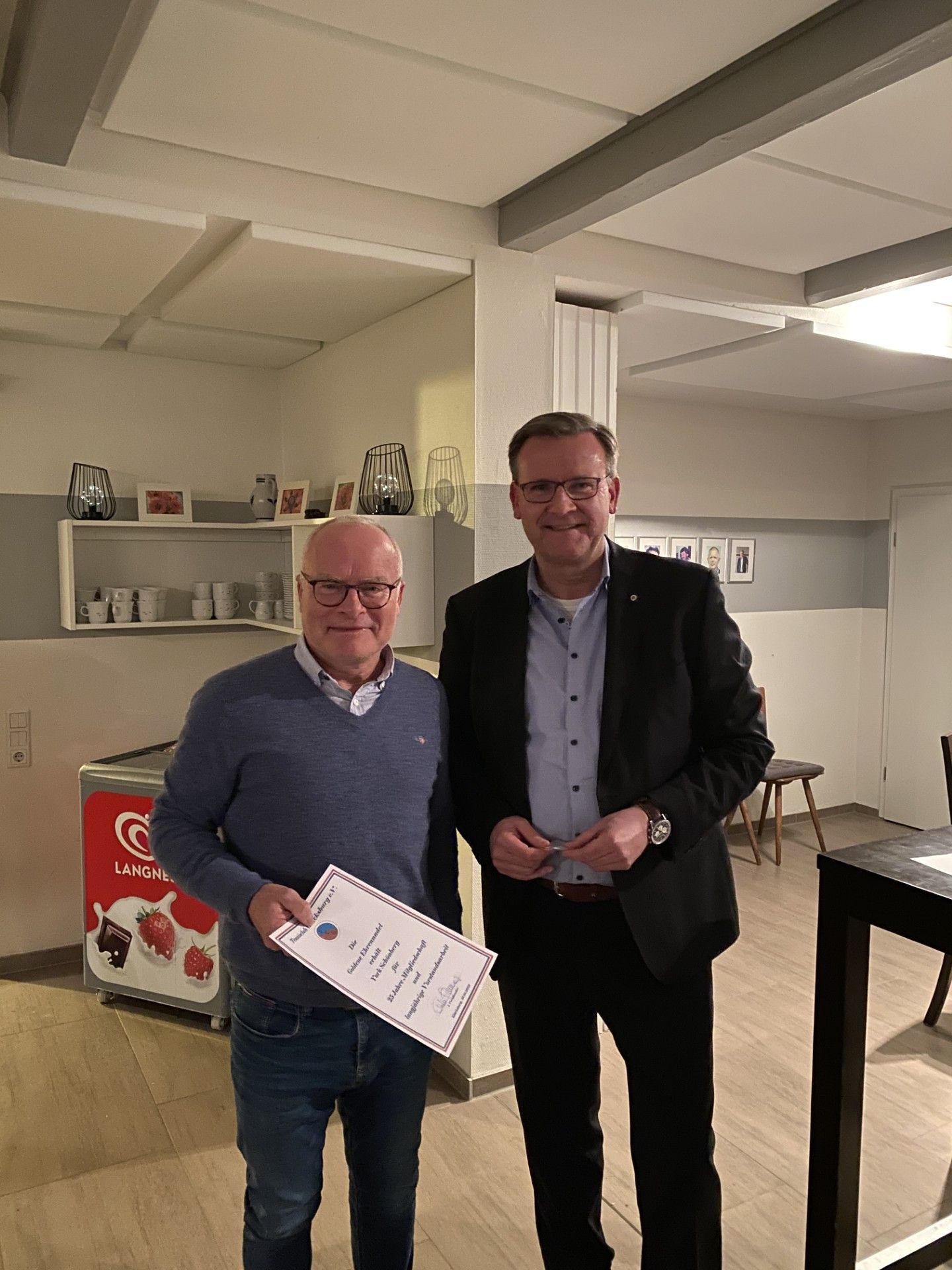 Die silberne Ehrennadel für 25 Jahre Mitgliedschaft erhielten Christoph Hansen und Gunter Hansen.