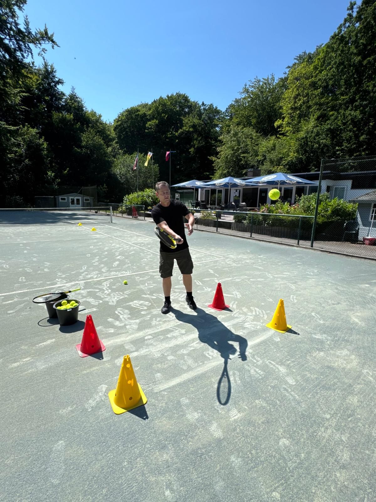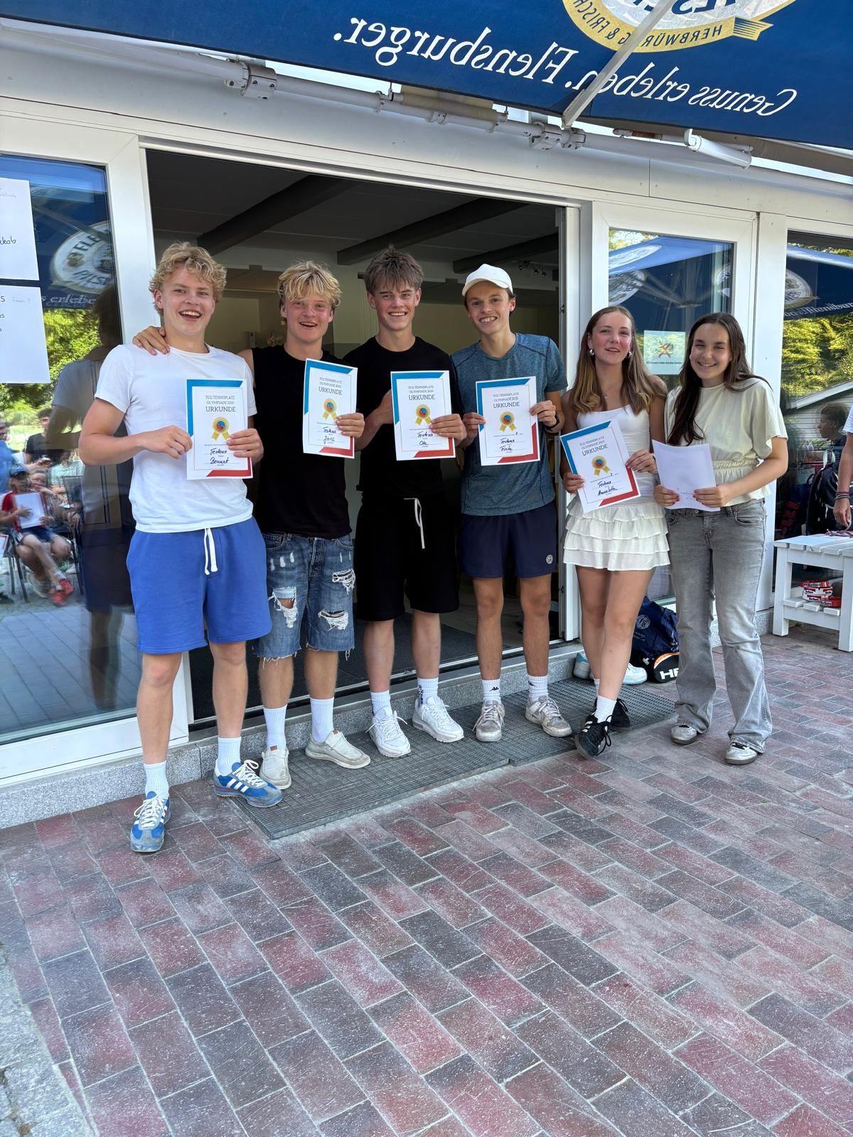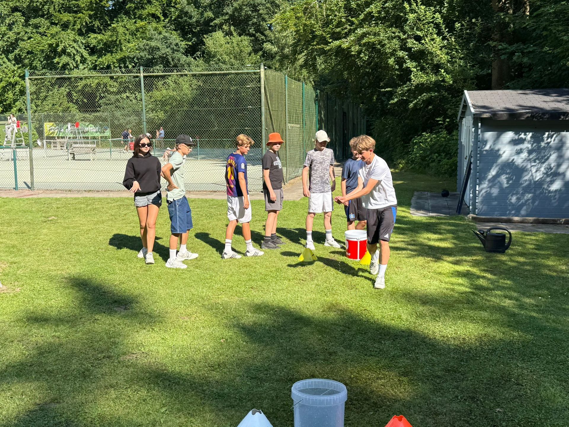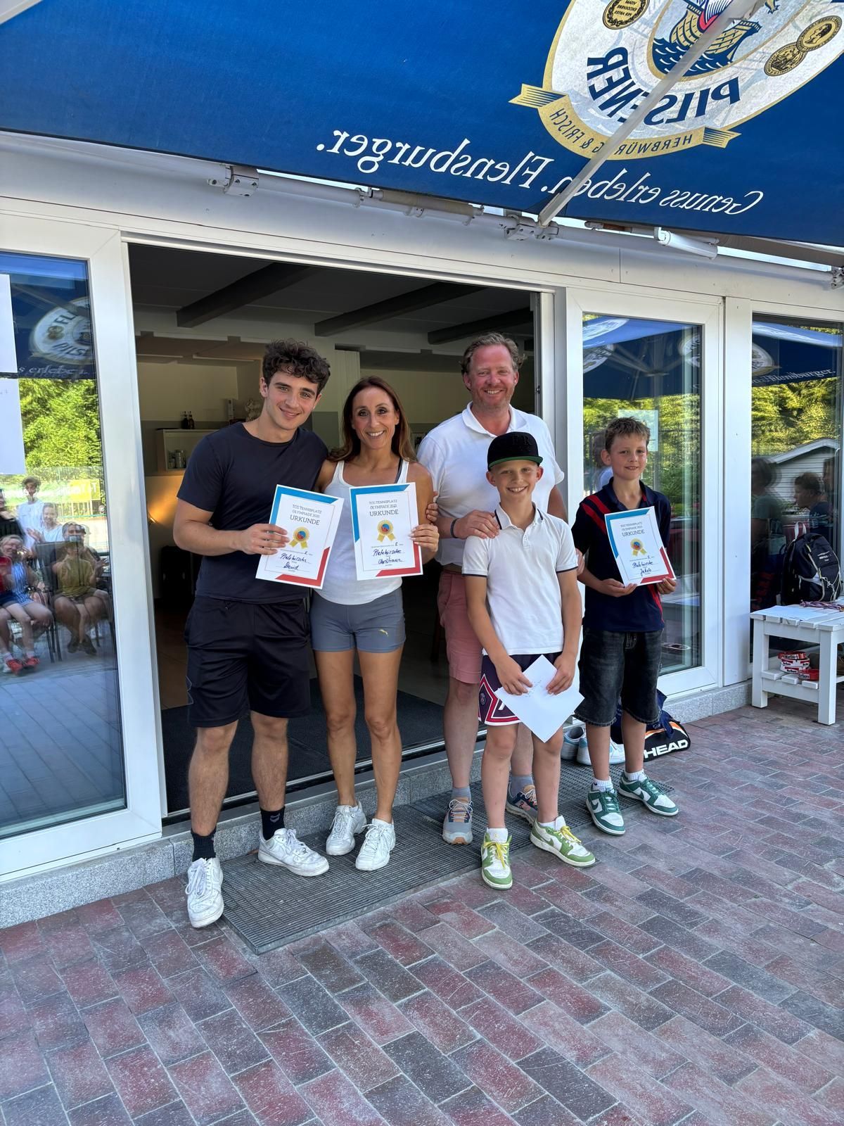 Am Samstag den 19.07. stand im Tennisclub Glücksburg die 1. Tennisplatz Olympiade auf dem Plan. Bei wunderbarem Sommerwetter kämpften rund 30 Teilnehmer, aufgeteilt auf fünf Teams, in zehn verschiedenen Minispielen auf unserer Anlage gegeneinander. Hier wurde vor allem nach Geschicklichkeit unter Zeitdruck gefragt: Von Parkourlauf bis Bälle mit einem Pömpel (natürlich unbenutzt) fangen, war alles dabei. Unsere Olympia-Organisation hatte bei der Erstellung der Spiele auf Spaß für Groß und Klein geachtet, sodass für alle ein fairer Wettkampf gegeben war. Trotz des Wettkampfcharakters stand für alle der Spaß an erster Stelle. Am Ende siegte das Team Golies mit deutlichem Abstand vor Team Techno. Im Anschluss gab es noch ein leckeres Grillbuffet mit gemütlichem Beisammensein.